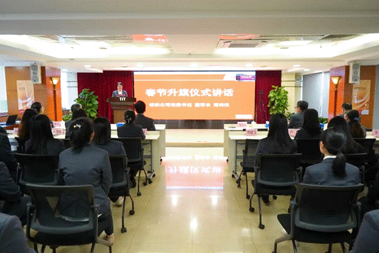 公司在廣德大廈15樓禮堂隆重舉行升國旗儀式。在雄壯的國歌聲中,全體人員肅立注目,表達對偉大祖國的無限熱愛和崇高敬意。公司黨委書記、董事長簡瑋儀代表領導班子發(fā)表致辭。她指出,過去一年全體紡織人迎難而上、砥礪奮進,圓滿完成了“十四五”各項目標任務。2026年是“十五五”規(guī)劃的開局之年,也是公司實現(xiàn)新跨越的關鍵之年。她號召全體干部職工緊緊圍繞“改革創(chuàng)新齊奮進,智鏈全球拓新局”年度主題,以“一馬當先”的銳氣、“快馬加鞭”的勁頭,錨定目標、聚力攻堅,奮力奪取開局之年“開門紅”。